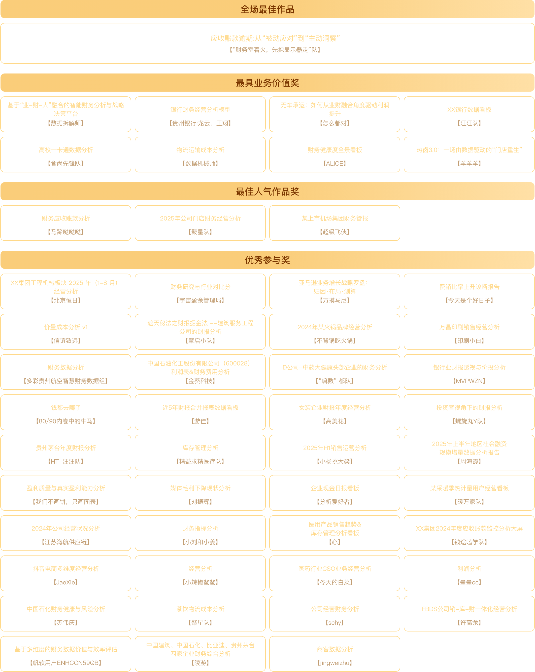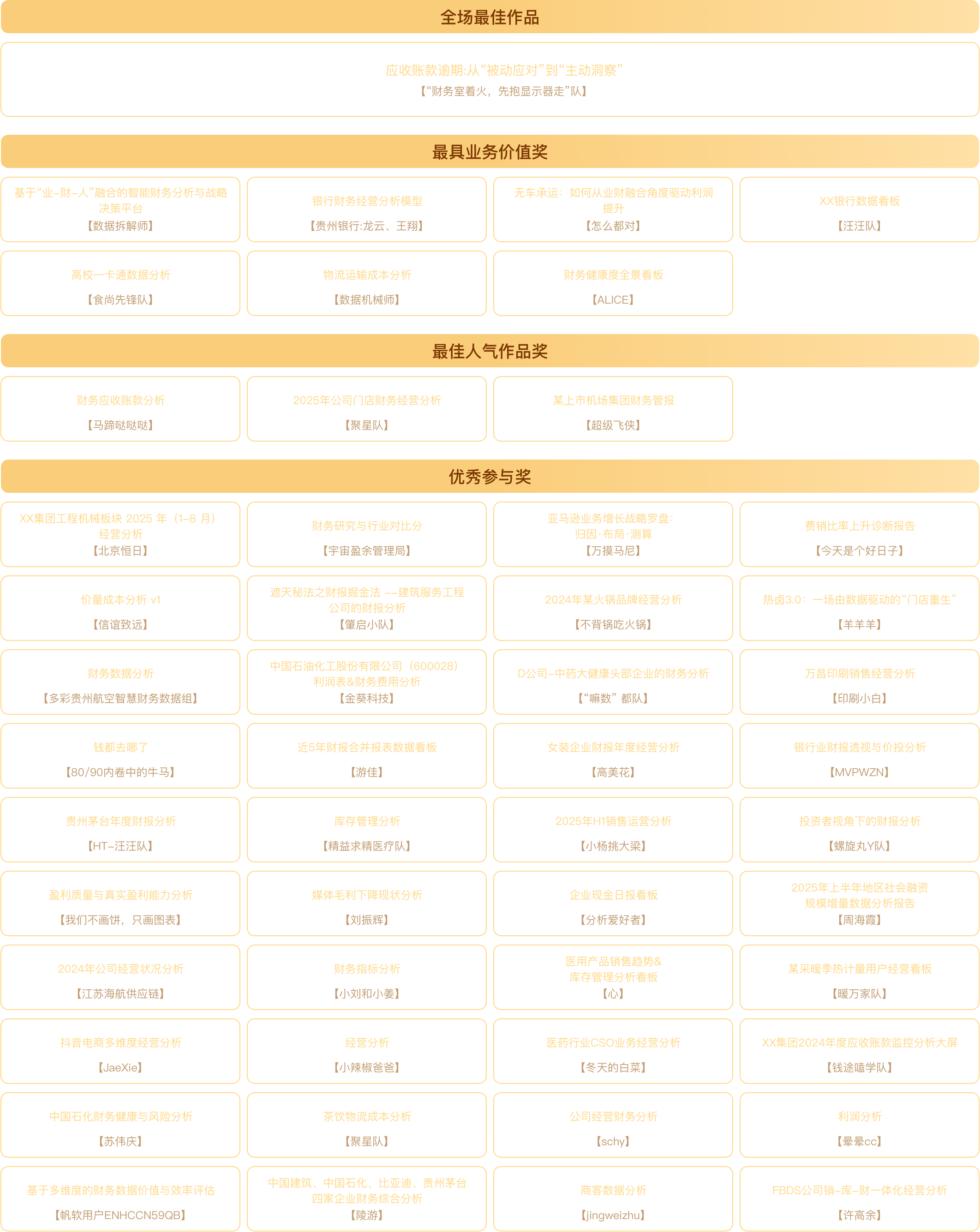 2、企业财务先锋奖:该奖项需满足三个条件。①组队全员需要都来自同一企业(建议财务+业务的组合),②作品数据需使用企业真实场景数据