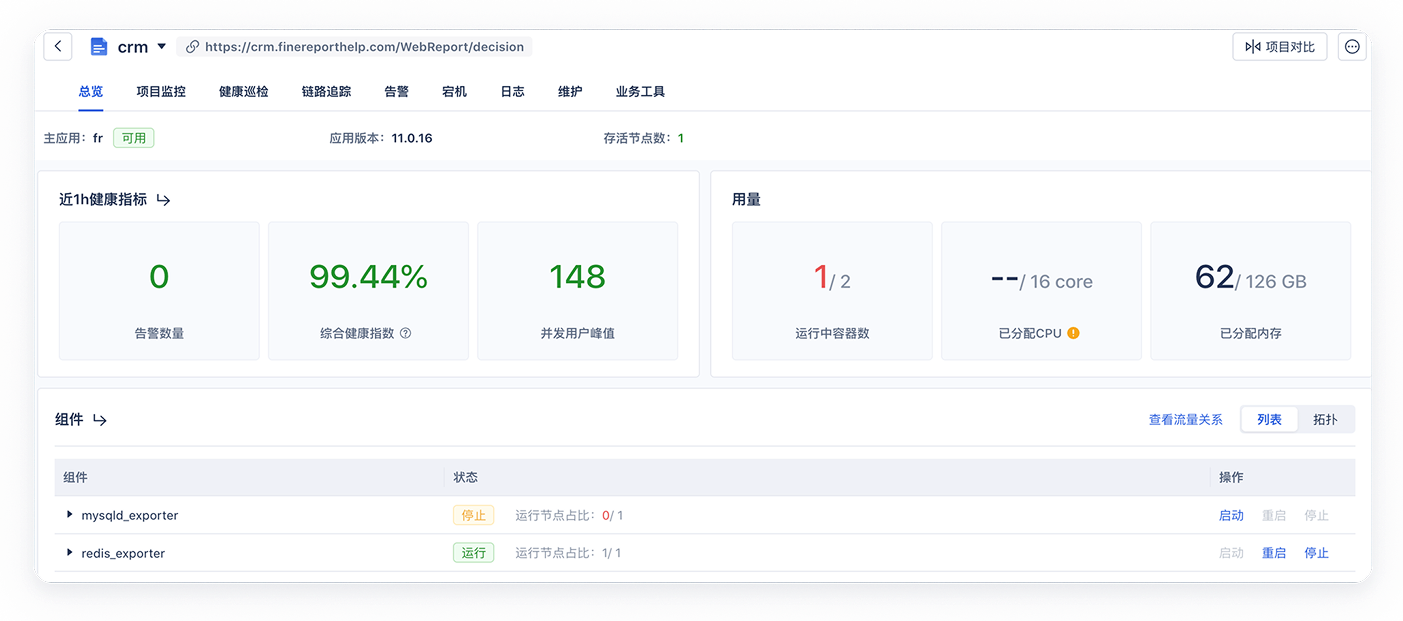 FineOps运维平台是保障帆软应用稳定运行和实现全方位运维管理的核心工具。通过自动化监控、集中化管理和可视化展示,平台显著提升系统稳定性与可用性,有效降低项目管理成本,加速故障排查与问题解决效率,为企业提供了一套高效、可靠的运维解决方案。