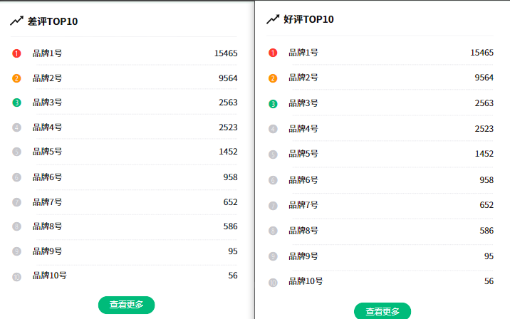 通过列表展示好评、差评TOP10的品牌,对各个快递公司的线路运营能力进行拆解,冲揽收、时效达成、超长单占比、物流退货数和差评数等指标进行分析